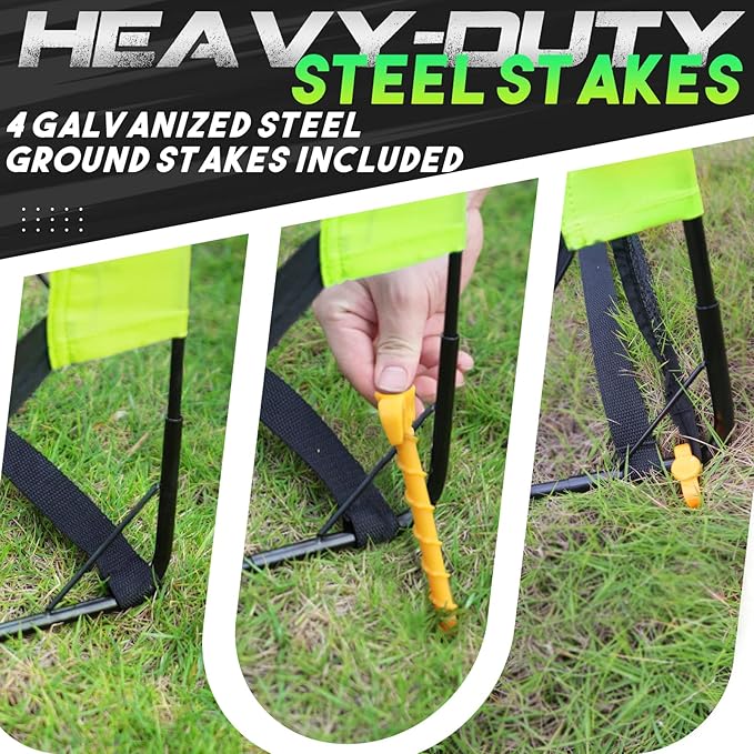 - 8 GROUND STAKES FOR REINFORCEMENT: The attached ground stakes can make the kids soccer net more stronger and stable, so it can withstand many strong shocks and not easy to fall down.