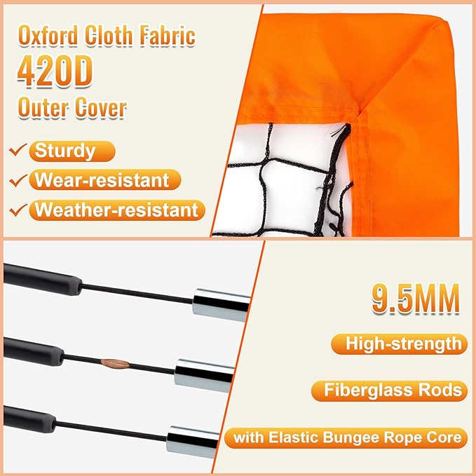 - ⚽【Quick and One-Time Assembly】Just follow the detailed instruction manual to finish installing the soccer net in 2 steps: Put the rods into the Oxford cloth sleeves, then connect them with L-shaped connectors. Secure with U-shape ground stakes for optimum stability when in use, do not need to be disassembled when not in use.
