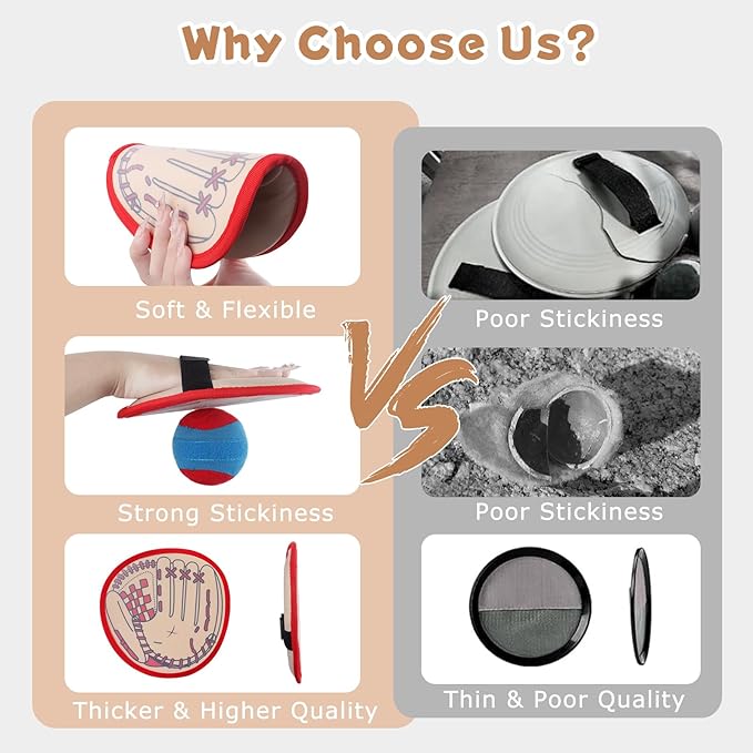 - Outdoor Games for Family - This catching balls set contains 4 paddles and 4 sticky balls. The four-pack set is perfect for the whole family or kids to play toss and catch games together when doing outdoor activities and sports.