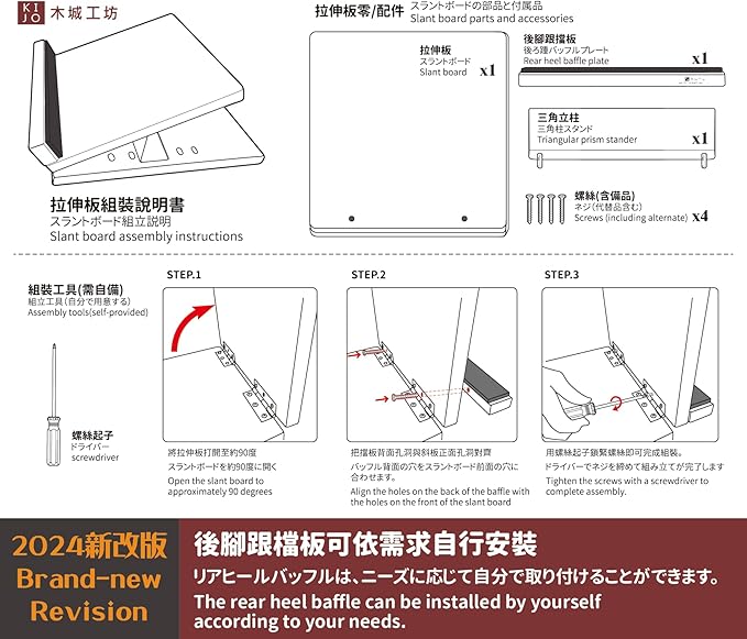KIJO Studio Professional Wooden Slant Board for Calf 16 Adjustable 440 lbs