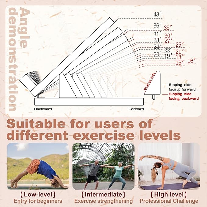 - This multi-functional slant board is adjustable to 16 positions, you can choose different levels of calf stretches from easy to hard. There are total 16 positions: 8 holes with the inclination of both sides of the triangle rod.