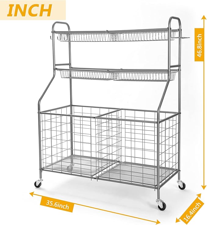 - DIMENSIONS: Overall product: 35.6" L x 16.4" W x 46.8" H, each basket: 17.7" L x 9.45" W, each storage bin:17.7" L x 15.7" W x 17.7" H