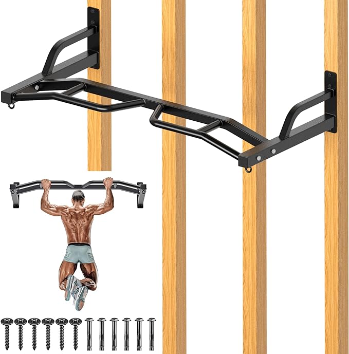 - 💪Achieve Your Fitness Goals: Whether you want to build muscle, burn fat, or improve your health, our wall mounted pull up bar can help you get there. With 12 different grip positions, you can perform various exercises such as pull ups, chin ups, dips, leg raises, and more. You can work on different muscle groups such as your back, chest, arms, shoulders, abs, and core with one simple device.