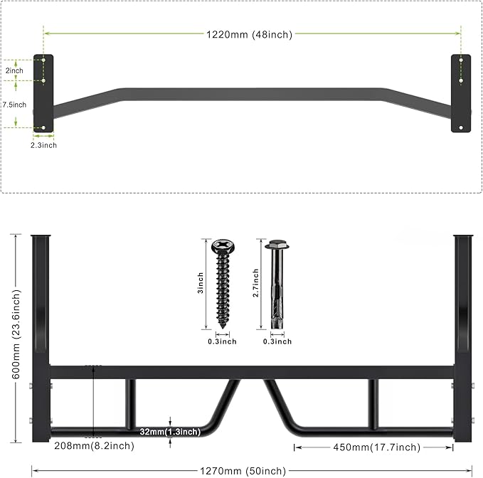 • 💪Easy to Install: Our pull up bar comes with all the necessary hardware and instructions for easy installation. You can mount it on any solid wall such as concrete, brick, or wood. The distance between the bar and the wall is 23.6 inches, giving you enough space to perform your exercises.
