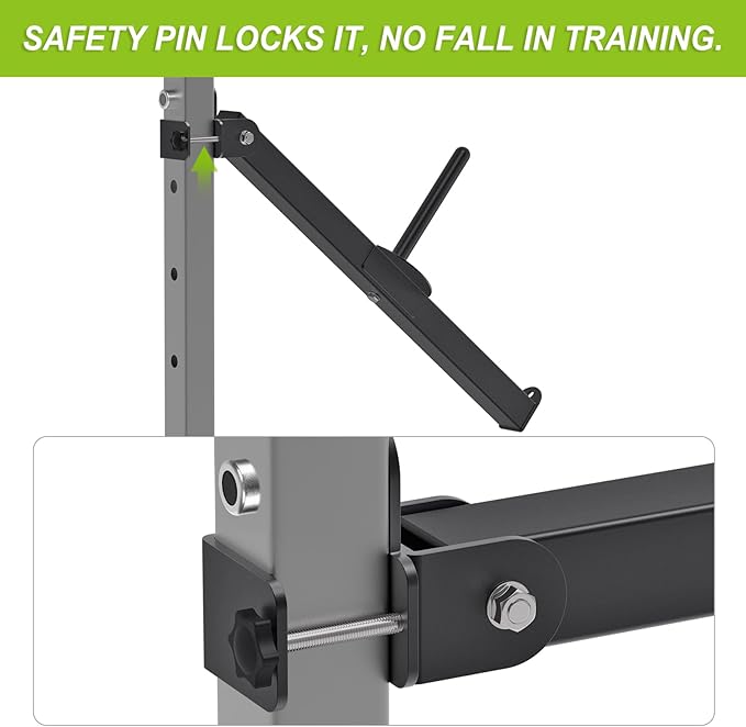 - 【Innovative connection design】Improved stability and durability with the innovative connection that prevents the support arm from touching the strength training frame when swinging up and down. This ensures that your frame will not be damaged or scratched by the attachment.