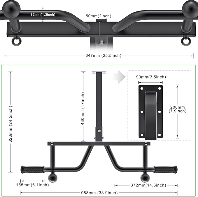 - INSTALLATION IS NOT RESTRICTED: The distance between the pull up bar and the wall is 24 inches, so it will not limit the installation location. A sufficient space can help you complete more fitness training movements.