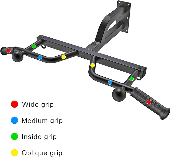 - COMFORTABLE AND SAFE GRIP: The Wall Mounted Pull Up Bar are equipped with 5 different gripping positions. Suitable for working out your backs, shoulder, chest, arms, triceps, biceps, lats, and the front of your abs. Made a circular anti-collision design at the edge of the handle.