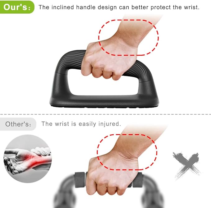 • Comfortable Handle: The handles of push-ups are made of high-quality soft plastic, protect your hands, it’s not easy to get calluses. The diameter is 1 3/5 inches, and the grip is comfortable and ergonomic.