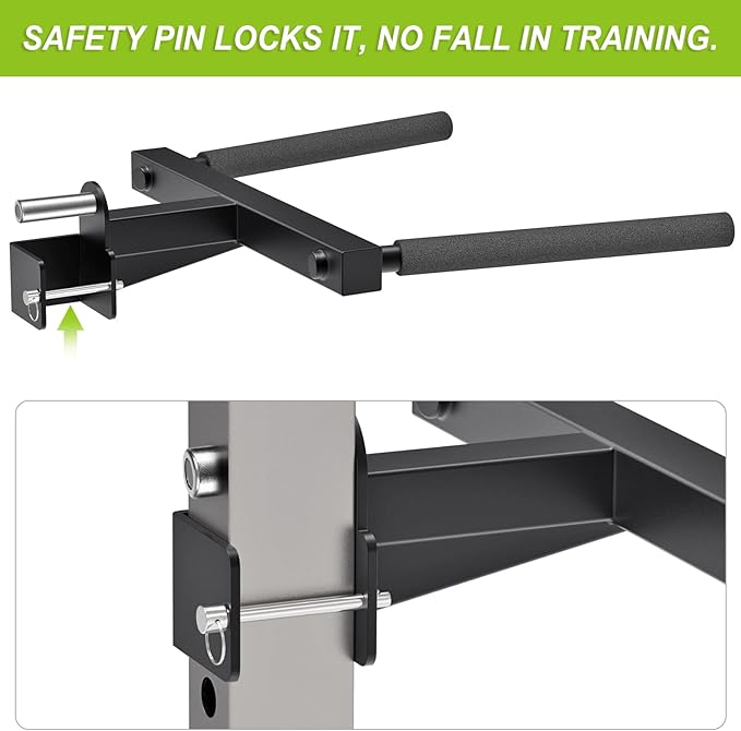 - 【Safety and Stability】The Y-Shaped Dip Bar have a locking clasp that secures them firmly to the power cage and prevents them from slipping off during your workout. You can exercise with confidence and peace of mind.