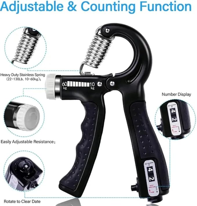 - 🖐️【SMART COUNTING GRIP STRENGTHENER】Our grip trainer features a built-in counter that tracks your progress during each exercise session without the need for batteries. Simply press the button firmly to count automatically and rotate the button to clear the digits. This function helps you track your training progress and achieve your fitness goals more effectively.