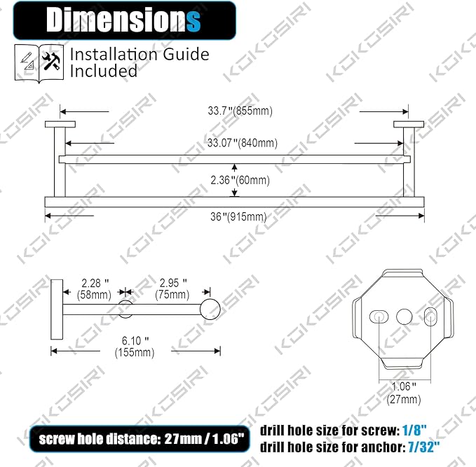 - ◄ Easy To Install ► One-Piece Designed for hassle-free installation. Integral design without assembly. The Package included 1 towel rack, bracket(already set well), screw pack and hex wrench. You can enjoy the easy DIY and finish it in 20 minutes. Backed by KOKOSIRI's One Year Limited Warranty