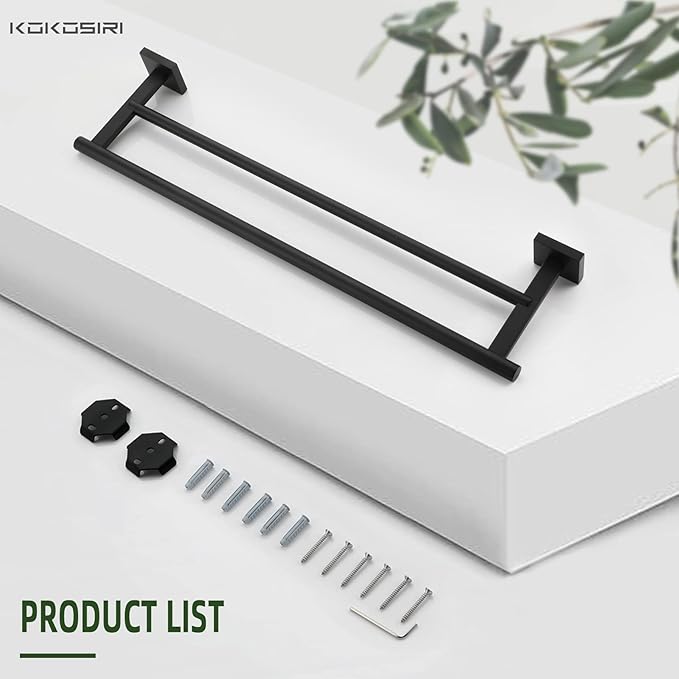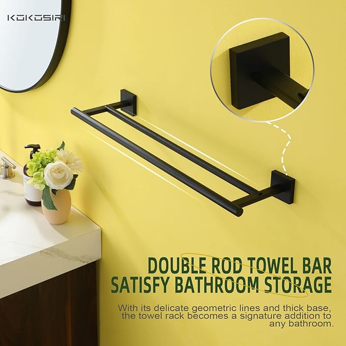 KOKOSIRI Towel Rails Bathroom Double Towel Bars Matte 20 Inch B5005BK-L20