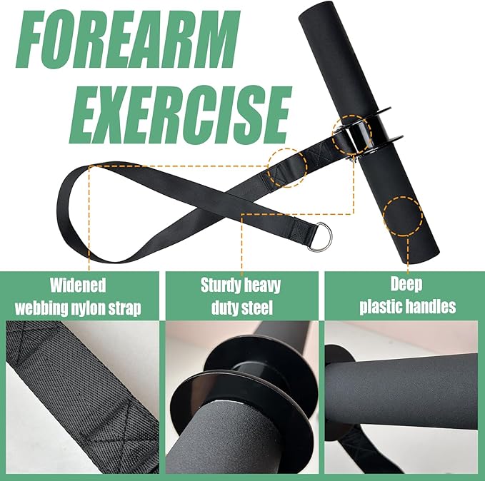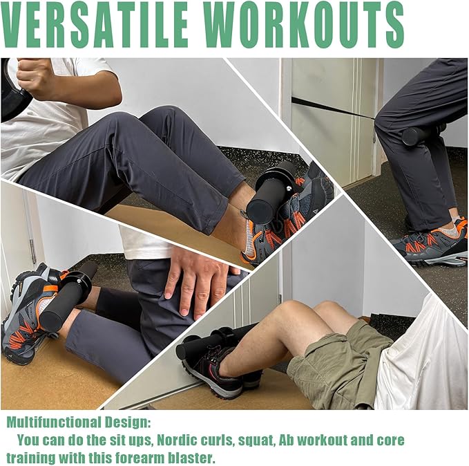 - Multifunctional Design:This first function of this forearm strengthener is that can strengthen your hands, wrists, and forearms. The second function is that you can do the sit ups, Nordic curls, squat, Ab workout and core training with it, just take a knot to connect the sponge anchor to the forearm roller