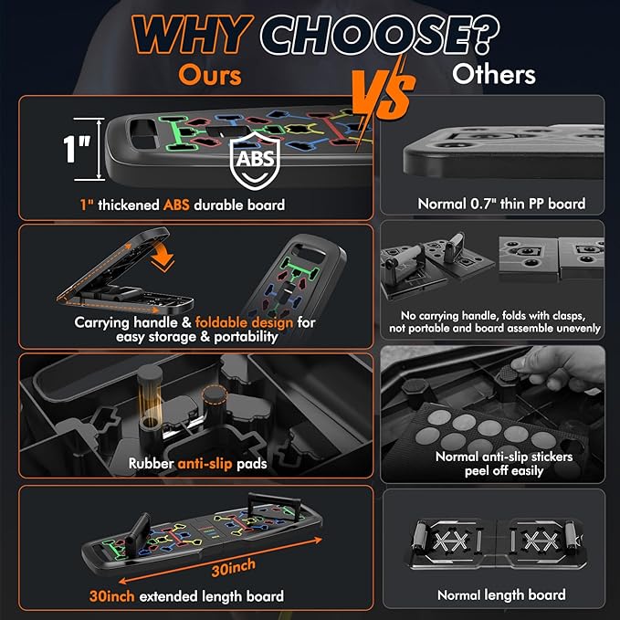 - 【Multifunctional Home Gym】:This foldable muscle max push up board is color-coded in order to provide multiple highly effective push up postures.KUYOU workout equipment home gym is specifically designed to target different muscle groups (chest, shoulder, triceps, and back), while engaging your core. Scientifically proven to activate 30% to 50% more muscle growth. Detailed instructions are provided with professional training guidance for maximizing your full body work out.