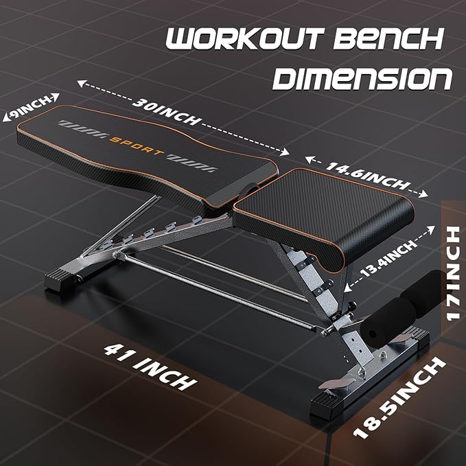 - Super Stable Triangular Structure: The upgraded work out bench design features a more robust triangular structure with a connecting bar in the middle, not only enhancing overall stability but also serving as a practical space-saving area for placing dumbbells.