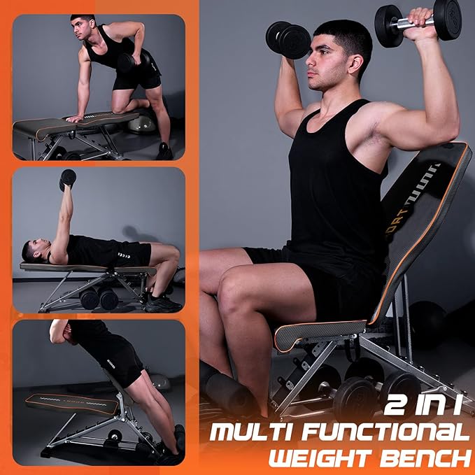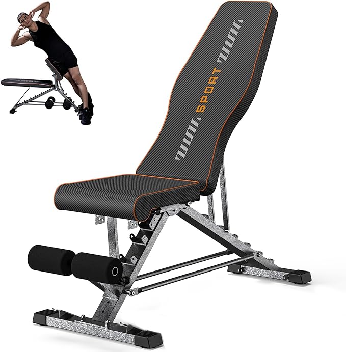 • Foldable & Easy to Storage: KUYOU adjustable weight bench Designed with a handy folding feature and equipped with a carrying strap in the middle, it can be easily stored and moved even in homes with limited space, significantly saving room.