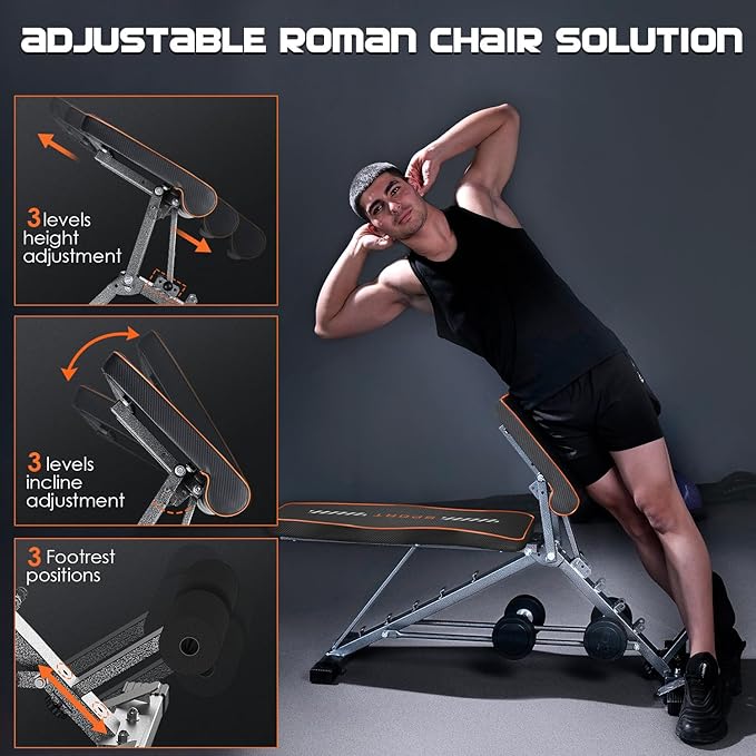 • Multi-functional Weight bench Design: Kuyou weight bench incorporates a two-in-one design, Switch freely between Roman chair and weight bench, allowing for standard weight bench use as well as abdominal training on the Roman chair to meet diverse workout needs.