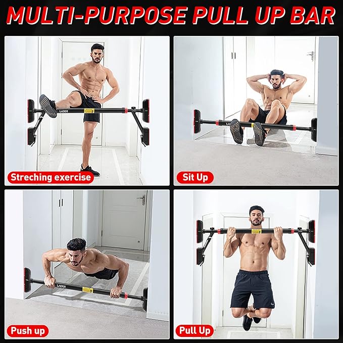 - 【Multiple Muscle Group Exercises】Our home gym bar allows you to perform a variety of upper body strengthening exercises.You also can move the upper body workout bar down to the lower part of the doorway for sit-ups, push-ups, dips, crunches and even stretching.