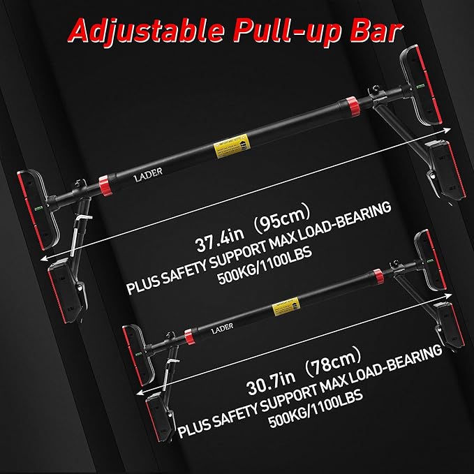 - 【Fully Adjustment Pull Up Bar】The pull-up bar can fit in most door frame between30.7"- 37.4" adjusted by the Hex Wrench.t can be installed in any cement walls, security doors, solid wood doors, corridors but not including fragile door frames,Suitable for standard doorway, perfect for home, garage or office use.