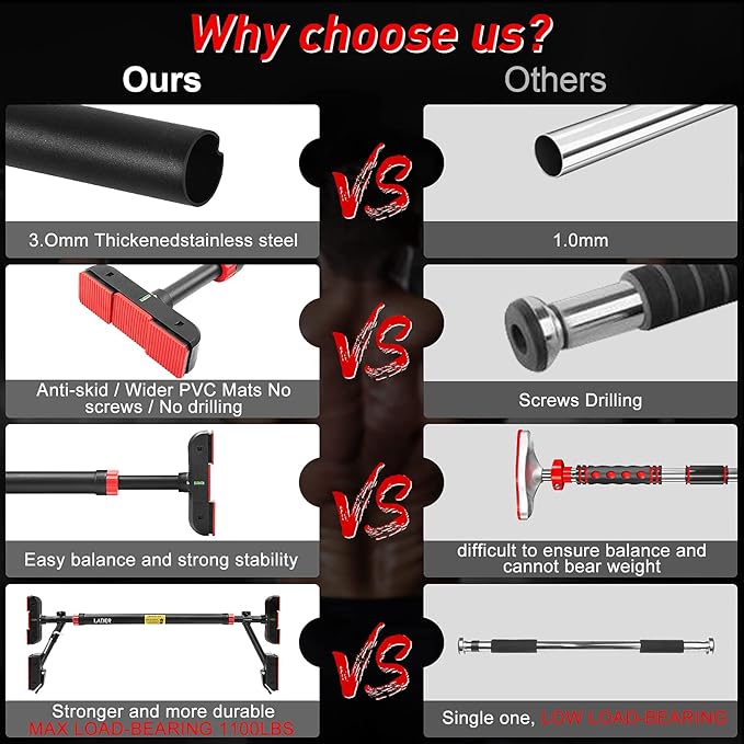 - 【No Screws & No Drilling】The pull up bar is designed with two widening anti-skid devices on both sides.It's very simple to install, just need to twist both sides to get it to the length by useing our Hex Wrench.