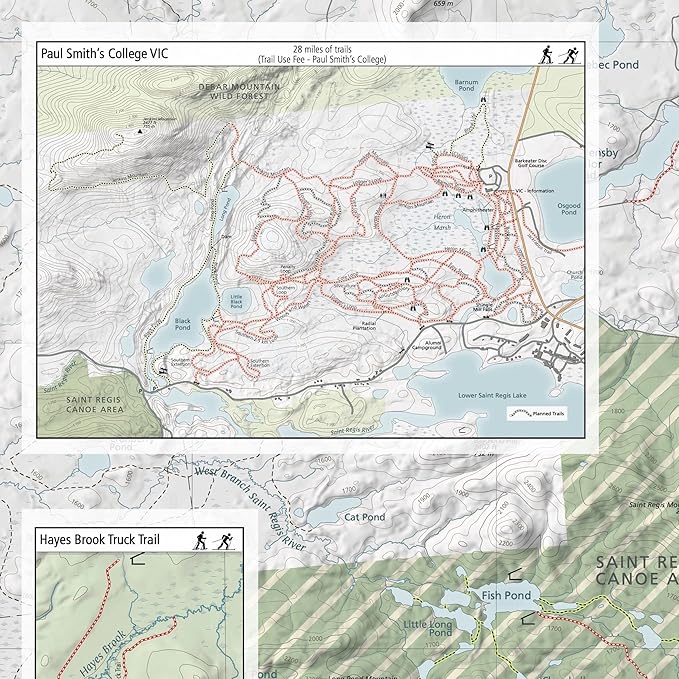 - ✈ LOCATIONS: Our Adirondack trail map features trail information for Lake Placid and Saranac Lake including the Jackrabbit Ski Trail, Paul Smith’s College VIC, Hayes Brook Trail, Deer Pond Trails, Moose Pond Trail, Brewster Peninsula Trails, Henry’s Woods, and Heaven Hill. Ski centers such as Paul Smith’s VIC, Dewey Mountain Recreation Center, Cascade X-C Ski Center and Mt. Van Hoevenberg.