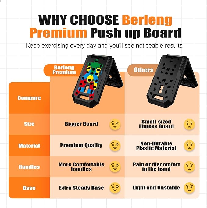 • Portable and Easy to Store: pushup board in the set is lightweight and can be folded 180 degrees. Whether used at home, in the office, or at the gym, this home workout equipment maintains stability on any floor surface. It is ideal home gym equipment for both men and women, easy to store and carry.
