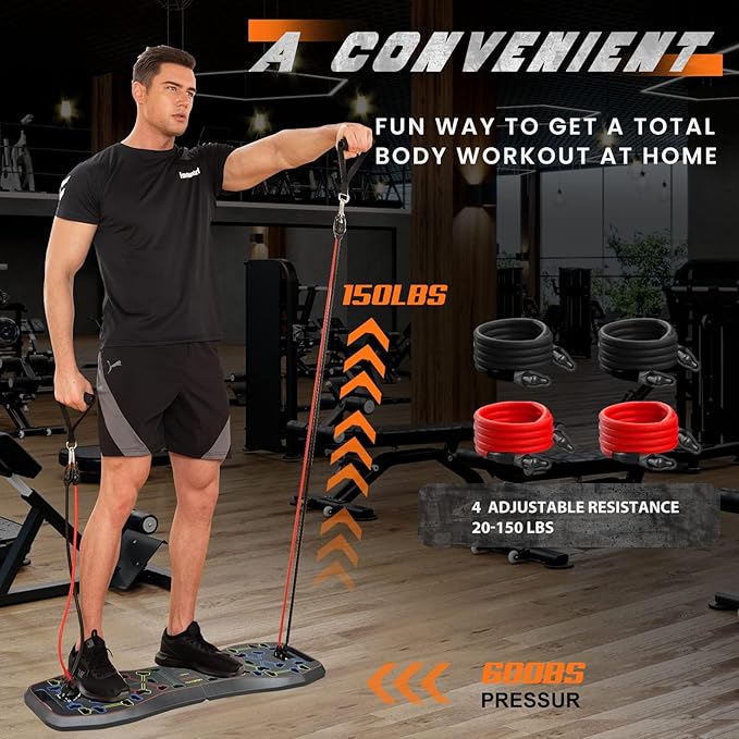 • Professional Workout Kit: Elevate your fitness game at home with a color-coded pushup board and resistance bands set. Versatile workouts for strength, resistance, and cardio—all in one kit.