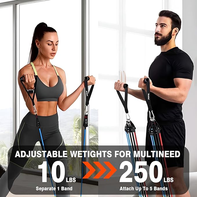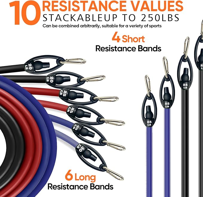 - Included Components : Resistance Bands Handle*2, Ankle strap*2, Door Anchor Sets, Resistance Band*10
