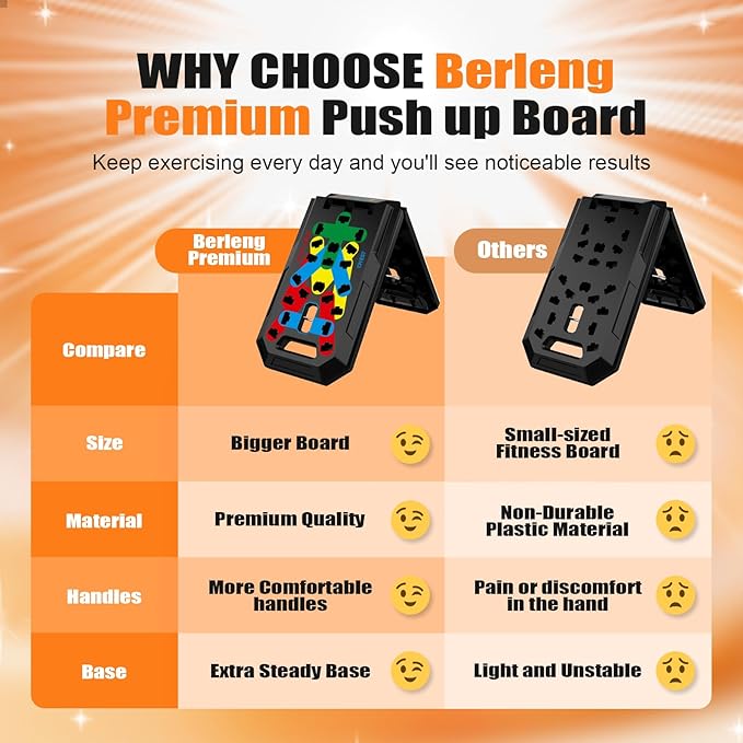 - High-Quality Materials and Anti-Slip Design: Made from durable ABS plastic, pushups board can withstand high loads. The handles feature an anti-slip design and materials, reducing wrist and elbow pressure and joint strain, providing a more comfortable workout experience.
