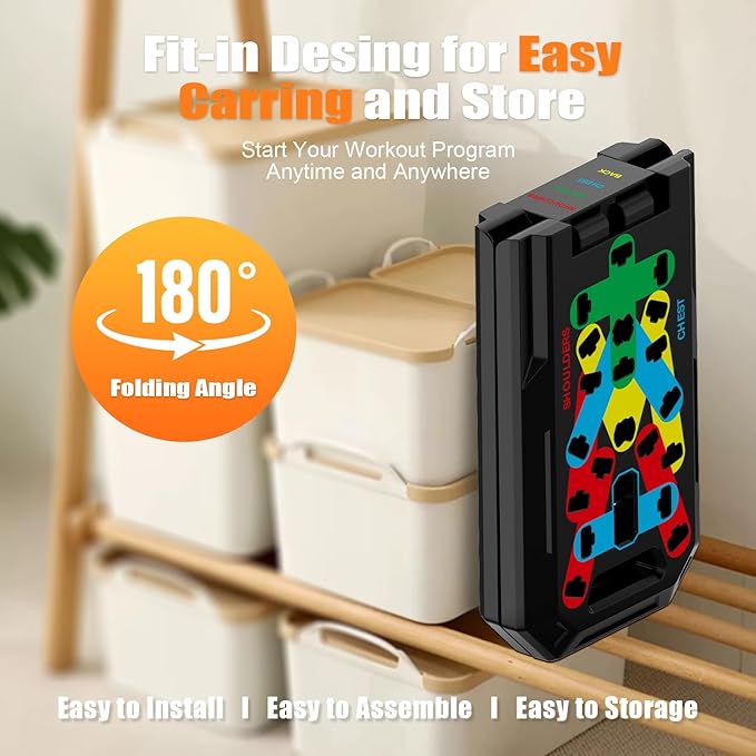 • Portable and Easy to Store: push up board is lightweight and can be folded 180 degrees for convenient storage. It can be used at home, in the office, or at the gym, maintaining stability on any floor surface, making it is ideal home gym equipment for both men and women.