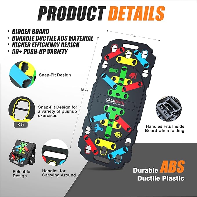 - BIGGER & STRONGER: Bigger foldable push up board can withstand tough workouts and provide long-lasting performance. It is designed for different muscle groups (back, chest, triceps, shoulders) and offers a wide range of mix and match color combination poses to make muscle training more professional and effective