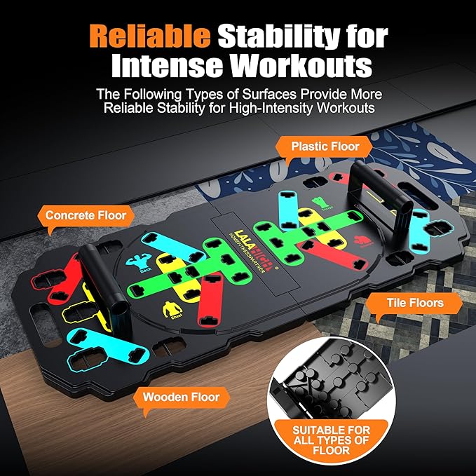 • GYM COMPLEMENT: LALAHIGH pushup board is a great addition to the gym. Whether you are a beginner or a professional, you can easily and quickly workout to burn calories and lose weight. Efficient shaping and weight loss program. Can save on expensive costs at the gym