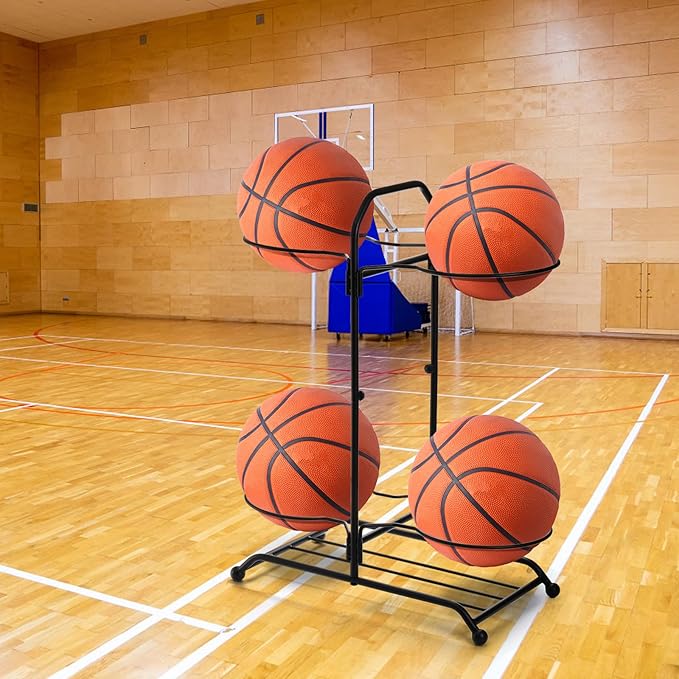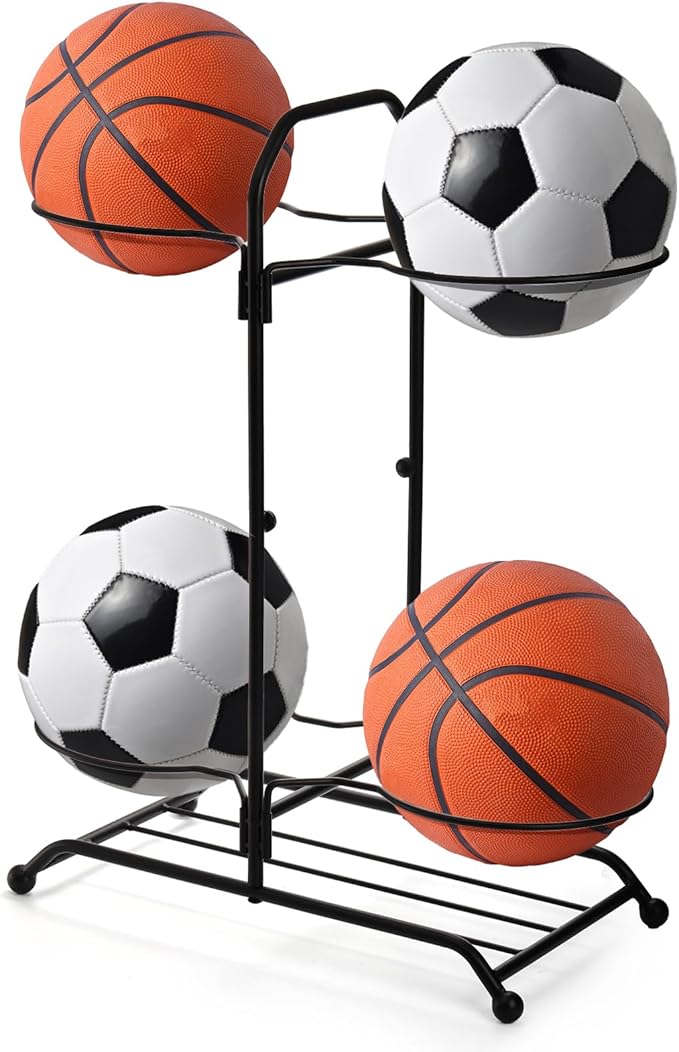 Lawei Metal Basketball Ball Storage Rack 4-Ball Double