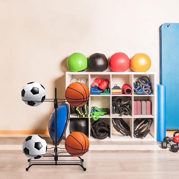 - Suitable for Many Places: The sports ball holder can be placed in gymnasium gym classrooms for storing sports equipment such as balls, yoga mats, or as a display rack for sporting goods stores. Keep your sports gear tidy and within reach with this innovative storage solution. This makes it a perfect indoor basketball rack and outdoor ball storage solution.