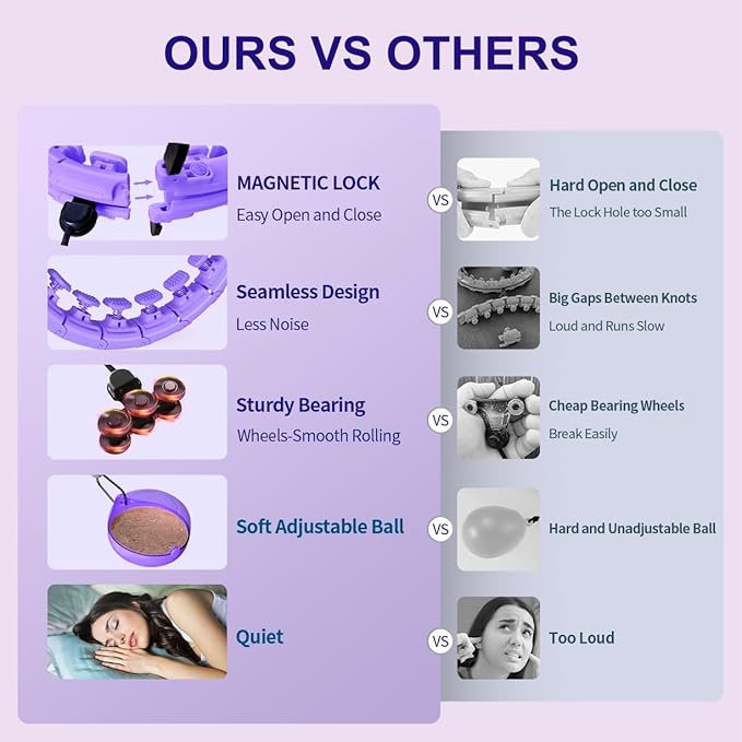 - EXCLUSIVE CUSTOM COLORS, HIGH QUALITY| We have multiple exclusive custom beautiful colors to fit your taste. Our product is the only hoop that has magnetic lock, adjustable weight ball and multiple custom colors. Sturdy, lightweight construction with high-quality ABS plastic.