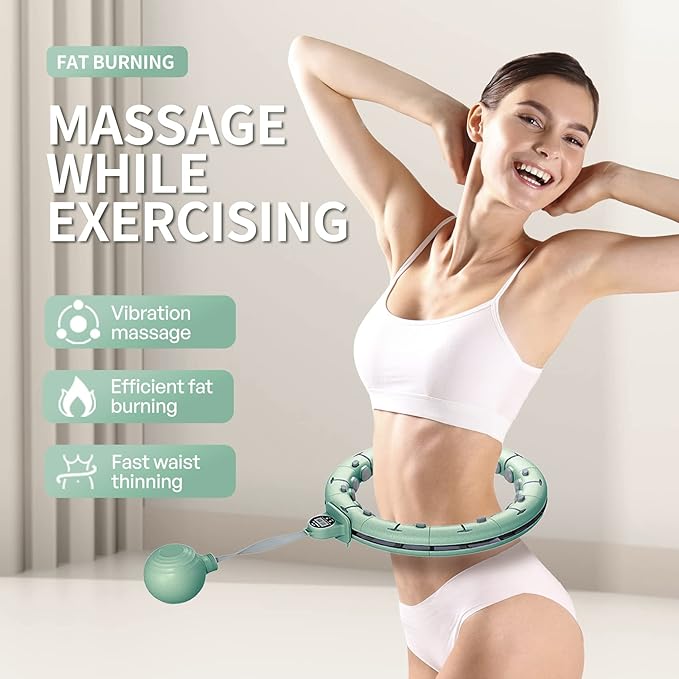 - 【Premium Materials】 The smart weighted exercise hoop is made of hard ABS plastic to prevent equipment aging. The inner massage heads are made of highly elastic soft silicone to protect your skin and provide soothing massage of your abdomen. The upgraded soft silicone massage heads provide 360° abdominal massaging action to tone and tighten your abdomen.