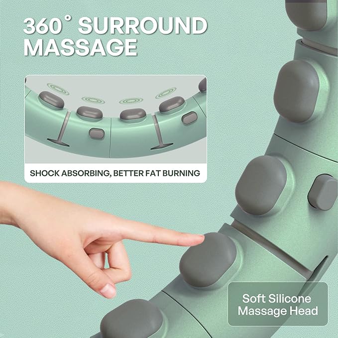 • 【Premium Materials】 The smart weighted exercise hoop is made of hard ABS plastic to prevent equipment aging. The inner massage heads are made of highly elastic soft silicone to protect your skin and provide soothing massage of your abdomen. The upgraded soft silicone massage heads provide 360° abdominal massaging action to tone and tighten your abdomen.