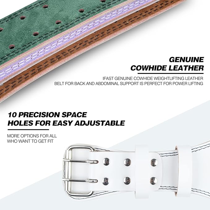 • [Quick & Easy to Adjust] -- Each belt is reinforced with 6 stainless steel rivets and double-row car line technology; each belt has a double-pin roller buckle made of stainless steel which won't rust, with 10 rows of holes that will help you easily adjust the size, suitable for men and women, to provide more options for fitness exercises