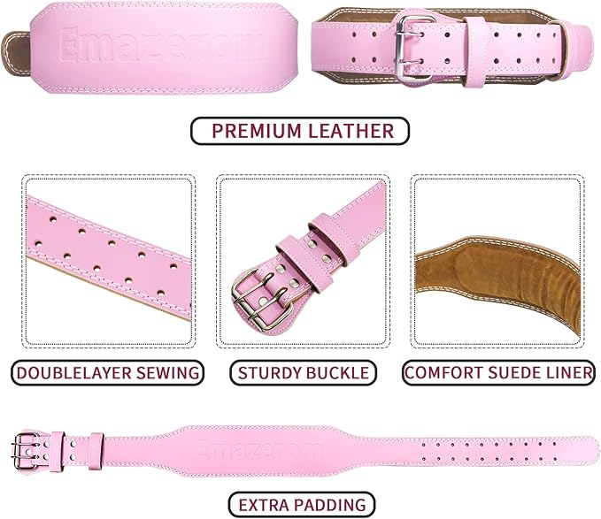 - 【Double Sided Leather - Comfort & Elegant】This men and women weight lifting belt is double sewn from premium leather, suede lining and padding ensure comfort while fitness, steel double-pin buckle makes it hard to loose, stylish and durable!