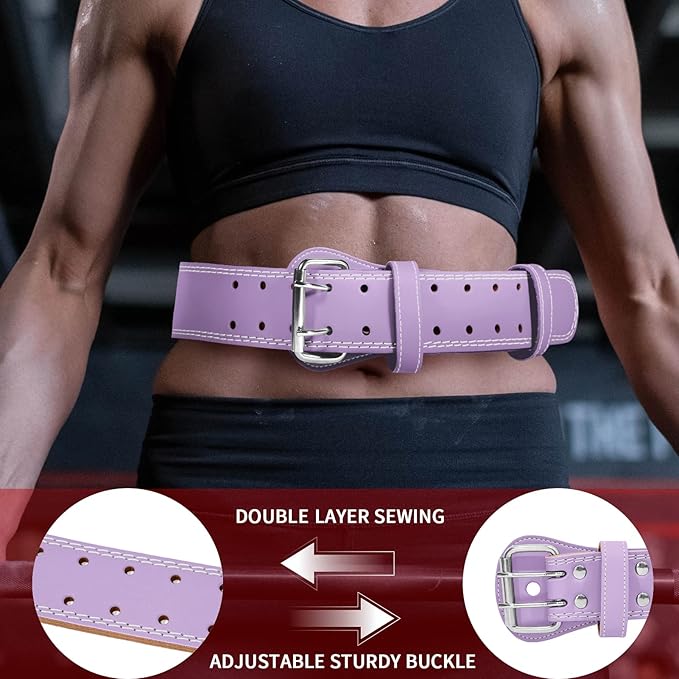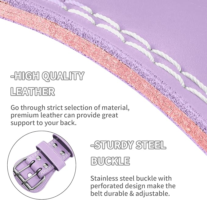 - 【Double Sided Leather - Comfort & Elegant】This men and women weight lifting belt is double sewn from premium leather, suede lining and padding ensure comfort while fitness, steel double-pin buckle makes it hard to loose, stylish and durable!