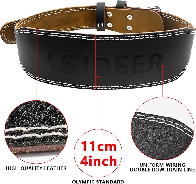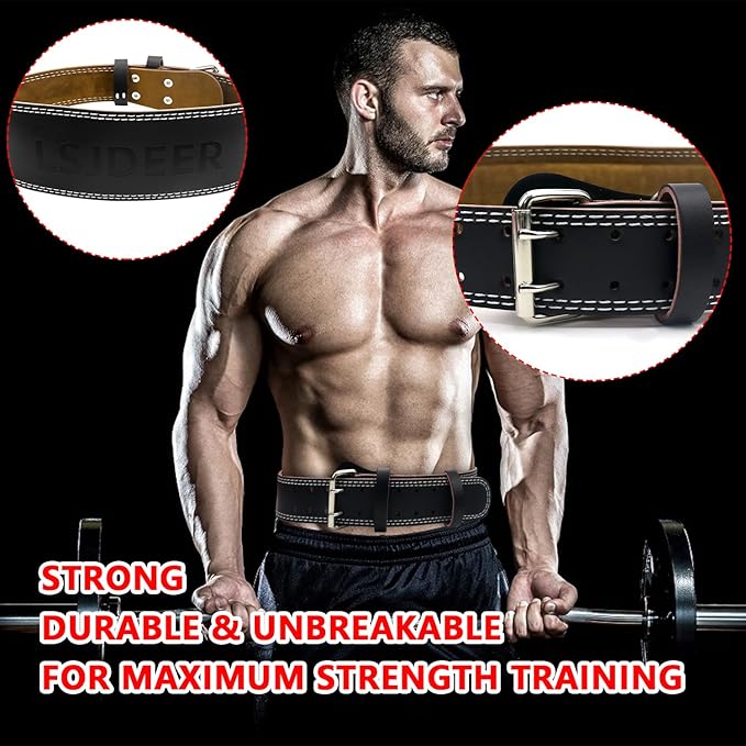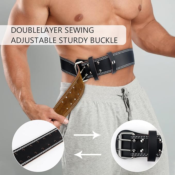 - Perfect Design: Made from leather and the 8 mm thick weightlifting belt that is hard to break and tear. The design of stainless steel buckle Each belt is reinforced with 6 stainless steel rivets and uses fine stitching technology - double-layer sewing; each belt has 10 rows of holes that will be free to adjust the waist circumference and feel comfortable.