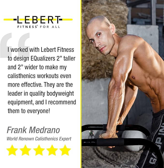 - Designed for the perfect fit: The Lebert EQualizer Bars are available in three sizes and have been rigorously tested to ensure the right fit for you and your safety - Large (71 cm high) fits users up to 178 cm, while the larger XL (79 cm high) is best suited for users over 178 cm. The XXL is 84 cm high and the highest and widest equaliser in the range for even more training options.