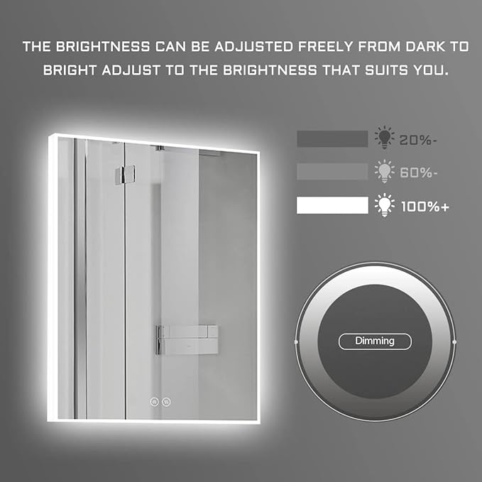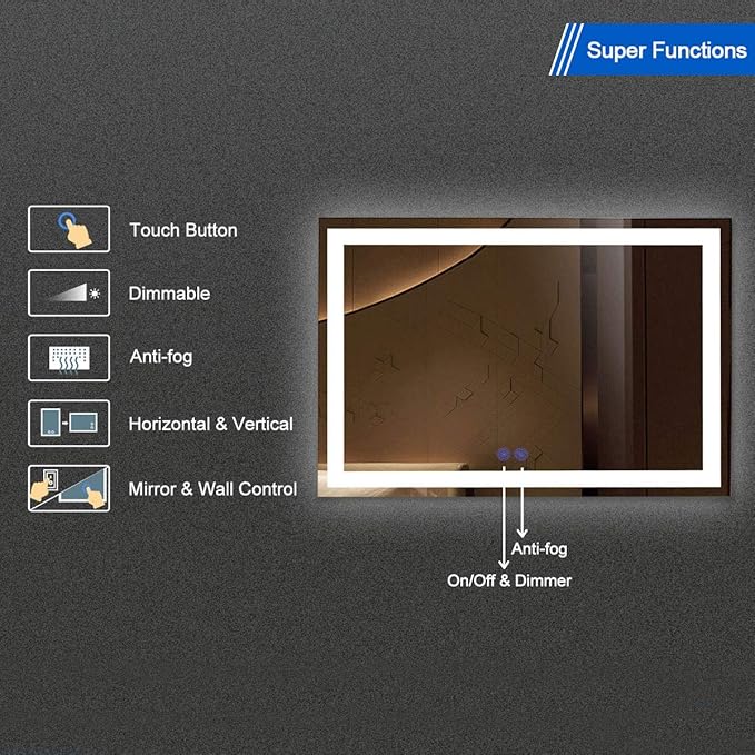 - 【Anti-Fog and Waterproof】The wall-mounted vanity mirror has an anti-fog function, it can automatically enter the anti-fog state with a flick of a switch, and can maintain a clear reflection image even after showering. Make your makeup look easier and clearer.