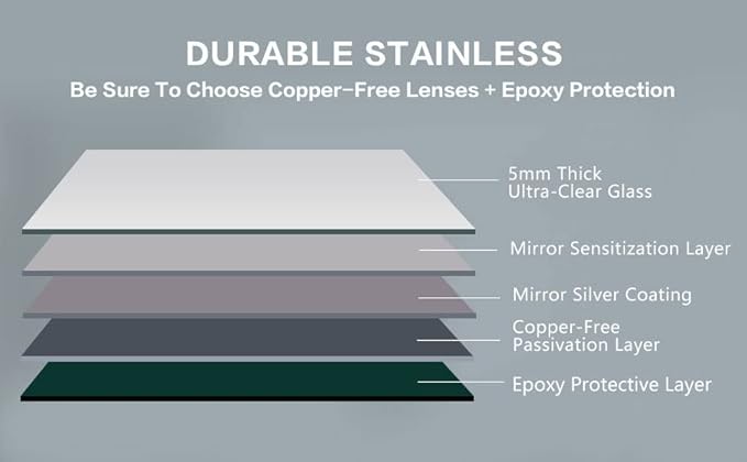 - 【Super Bright and Clear】Using high-definition environmental protection copper-free silver material, no shadows, super clear.Perfect for shaving, makeup in fashionable fancy salon,spa,hotel bathroom or home bedroom.