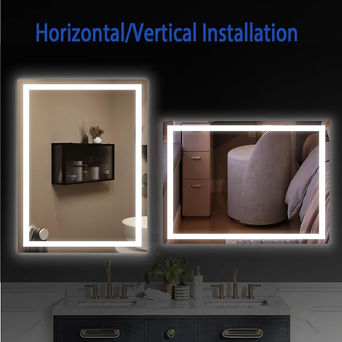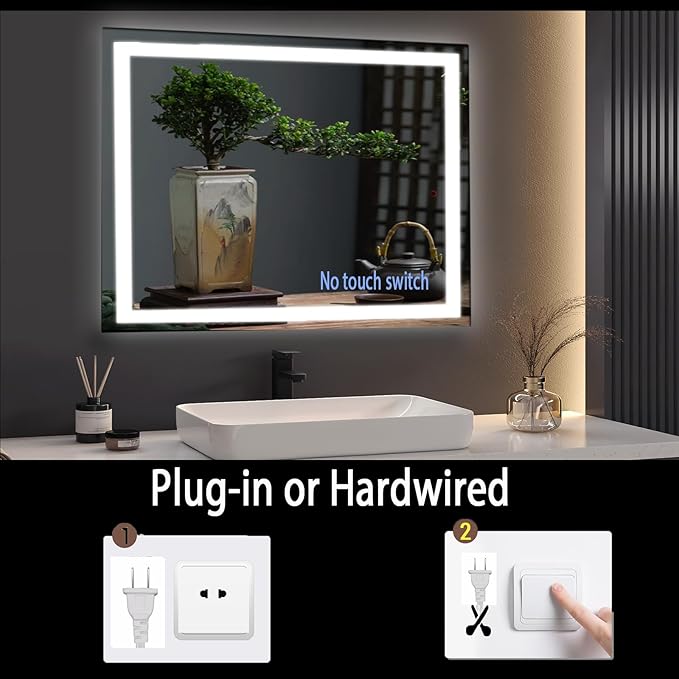 - Plug in or Wall Switch: With a standard 2-prong plug, you can plug directly into an outlet to use this lighted bathroom mirror for wall-mounted, or hardwire it to control it via a wall switch.