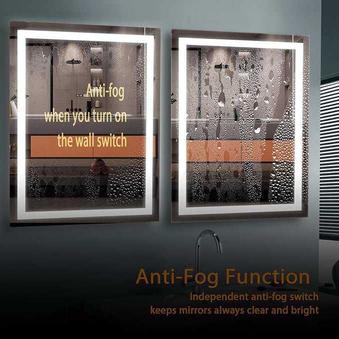 - Anti-fog and waterproof: The defogging function ensures that the clear reflection image can be maintained even in the steam shower or steam. IP54 waterproof grade provides environment-friendly and safe lighting, which is very suitable for use in sink or wet environment.Our mirror also features a 50% larger anti-fog area.