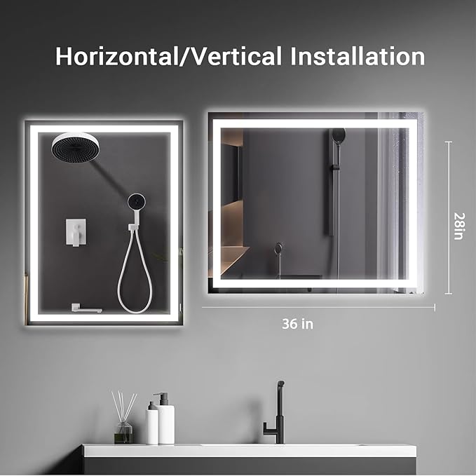 - Anti-fog and waterproof: The defogging function ensures that the clear reflection image can be maintained even in the steam shower or steam.IP54 waterproof grade provides environment-friendly and safe lighting, which is very suitable for use in sink or wet environment.Our mirror also features a 50% larger anti-fog area.
