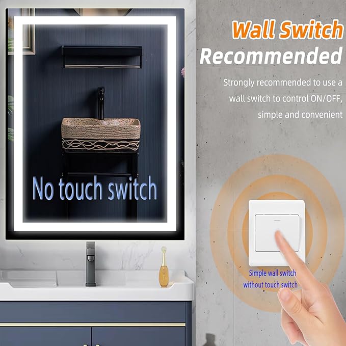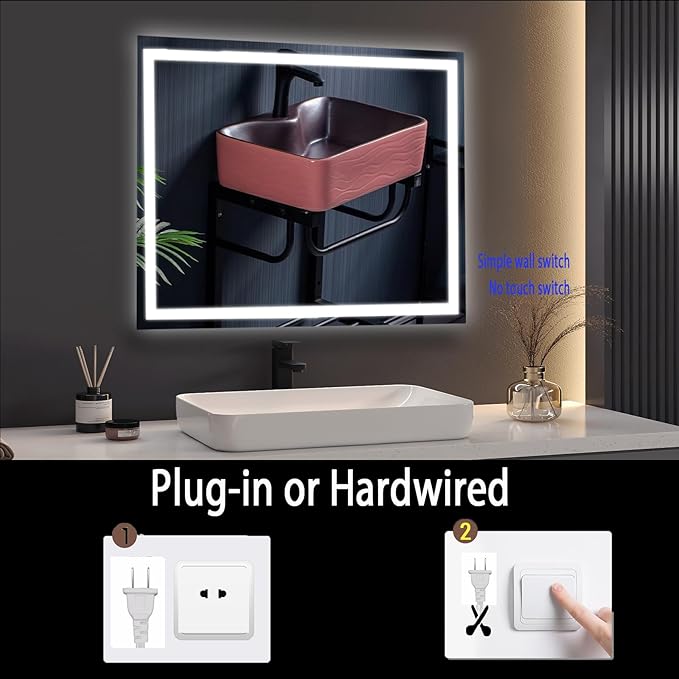 - Plug in or Wall Switch: With a standard 2-prong plug, you can plug directly into an outlet to use this lighted bathroom mirror, or hardwire it to control it via a wall switch.
