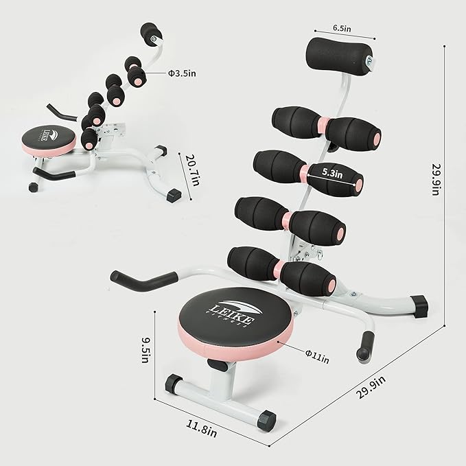 - Unique Design:The fitness machine fits the curve of the human body, cares for your spine and supports your back and neck. The thick round foam can roll while you rock, effectively eliminating the strain on your back and neck.360° Rotate Round PU leather cushion with excellent height from the ground and head support pad with 3-level adjustable heights provide you with comfortable workout experience.