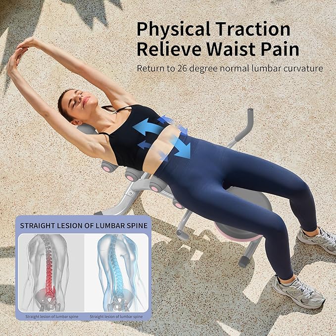 - Back Relax Chair:This Back Relax workout machine will help you get into shape without laying on the floor or putting stress on your knees, back or neck. Our workout chair Integrate inversion therapy, core strengthening and back pain relief to not only help to strengthen your abdominal muscles but also stretch out your back, keep you away from back pain.